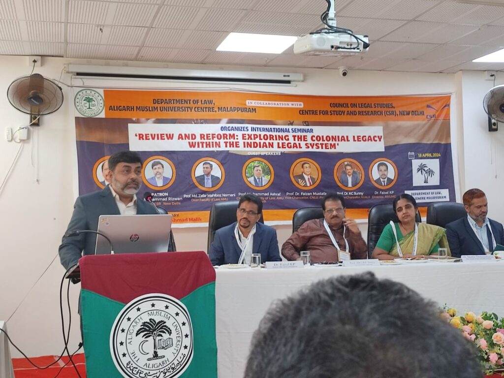 The Council on Legal Studies, Centre for Study and Research (CSR), New Delhi, collaborated with the Department of Law, Aligarh Muslim University Malappuram Centre, Kerala, to organize an International Seminar on ‘Review and Reform: Exploring the Colonial Legacy within the Indian Legal System’ on March 17, 2024, at the Department of Law, AMU-Malappuram Centre, Kerala, India. The seminar tackled a broad spectrum of issues, ranging from Legal Theory to Criminal Laws to Personal Laws, with a keen focus on how the notion of reform is portrayed in legal discourse from various angles. Topics covered included the History of the Criminal Justice System in India, the History of Muslim Personal Law Application and Reform, and Reforming the Criminal Justice System.